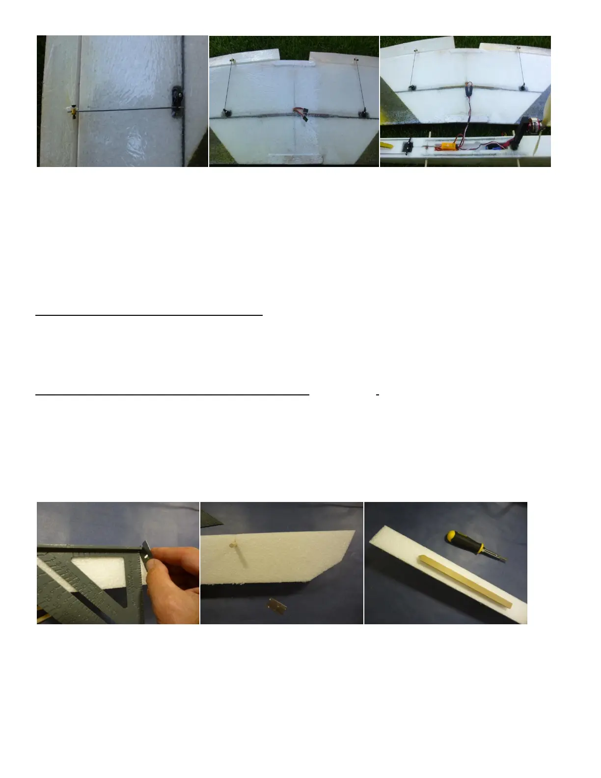 59. Cut a slit for the white plastic control horn to be pushed through from the top of the wing