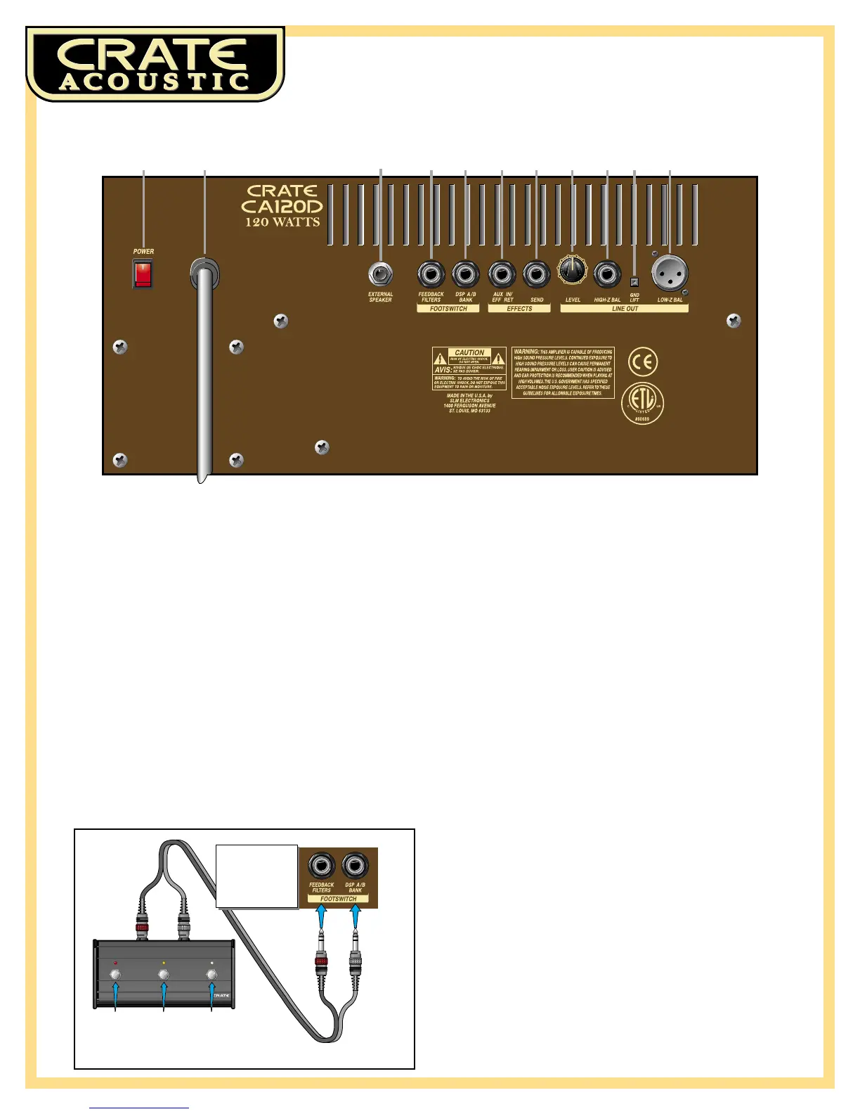 22: Feedback Filters Footswitch. Connect the three-button footswitch to