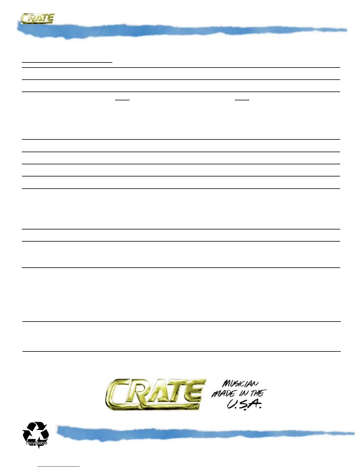 Size and Type 12” Crate 60 watt (1) 12” Crate 30 watt (2)