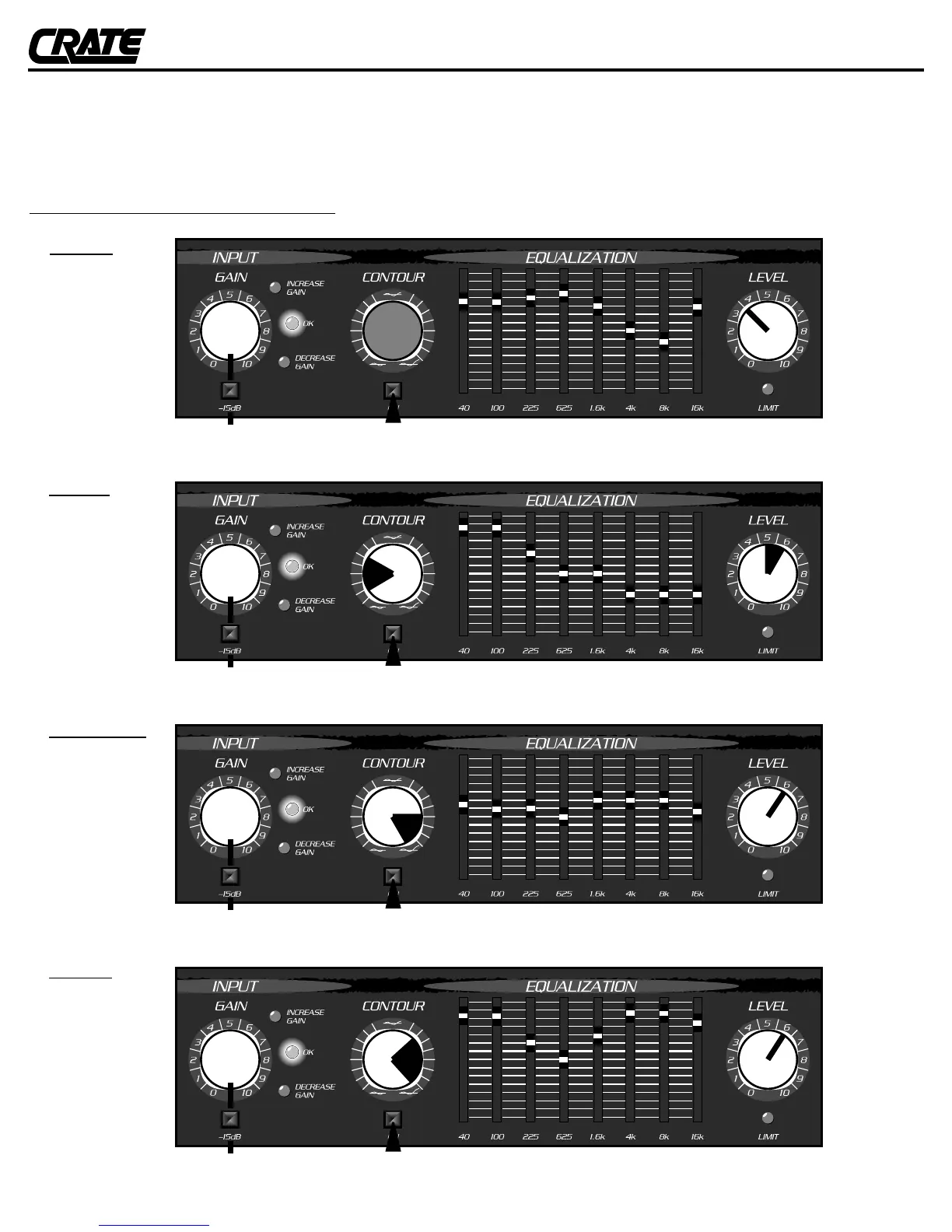 Crate BXH-220 - Suggested Settings; Rock Tone Settings; Jazz Tone Settings; Country Tone Settings
