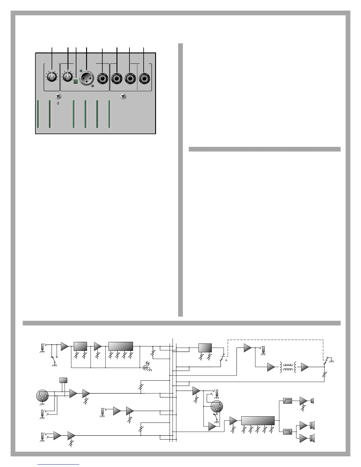 to a house sound board, a recording console or an external power ampli-