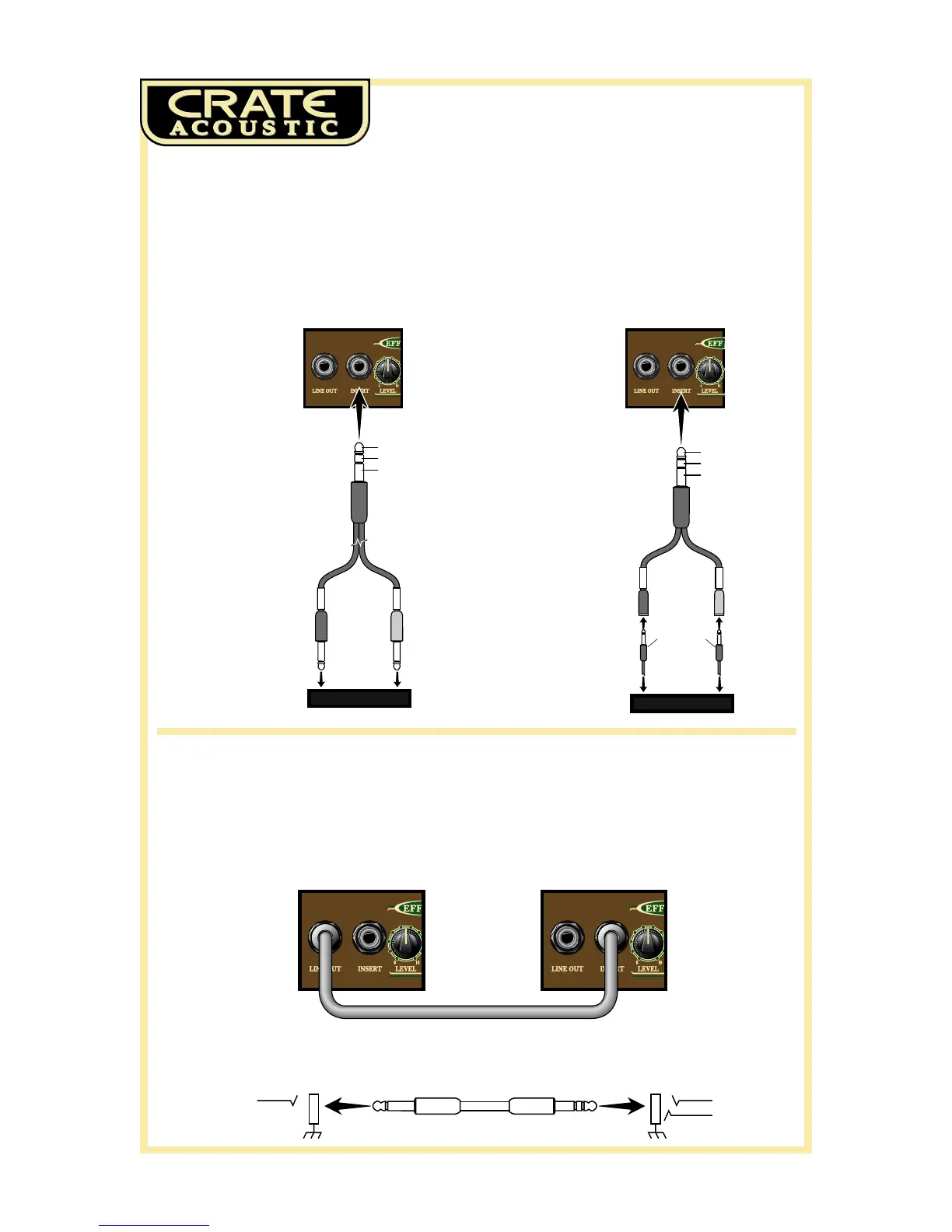 its power amp stage. To connect the effect to the Insert jack use Crate’s STP201, STP202,