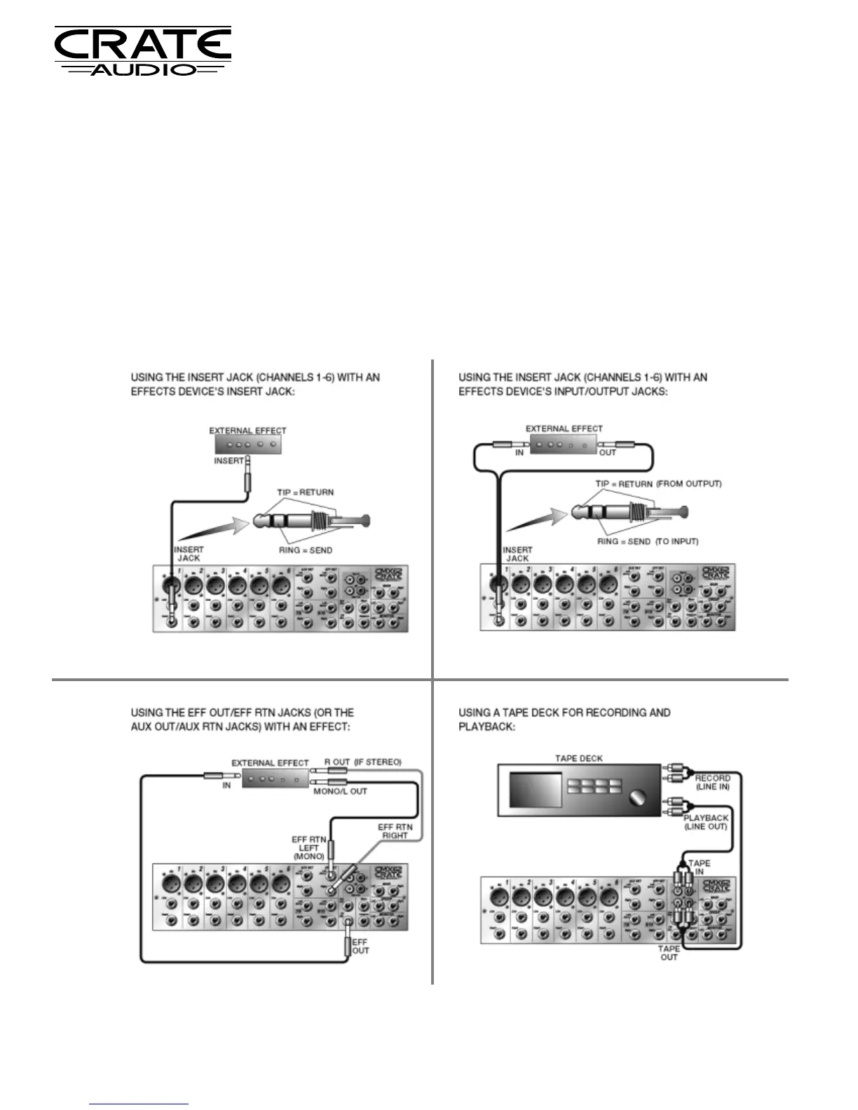will accommodate stereo as well as mono effects. The illustrations below show some of the different connections.