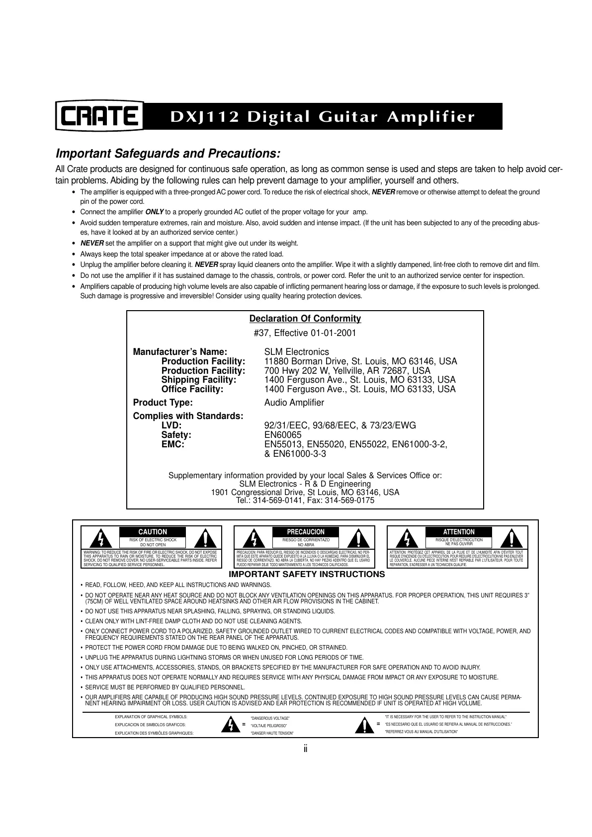 All Crate products are designed for continuous safe operation, as long as common sense is used and steps are taken to help avoid cer-