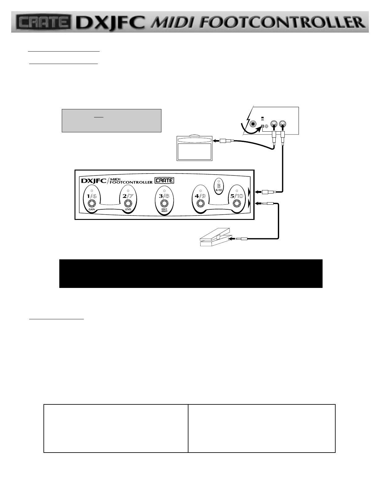 get its power and it won’t work. (To avoid damage when using any MIDI device other than a Crate footcontroller with a DX ampli-