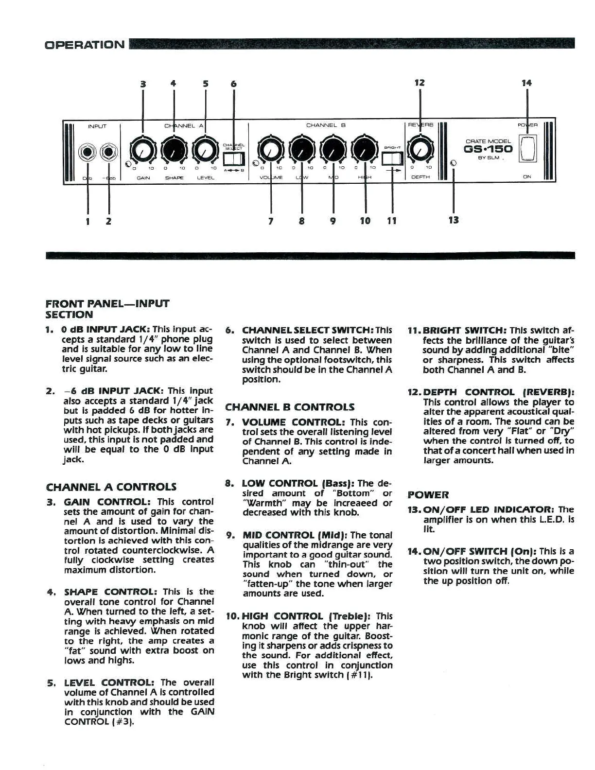 Crate GS.150 - Operation and Controls; Input Section; Channel A Controls; Channel B Controls