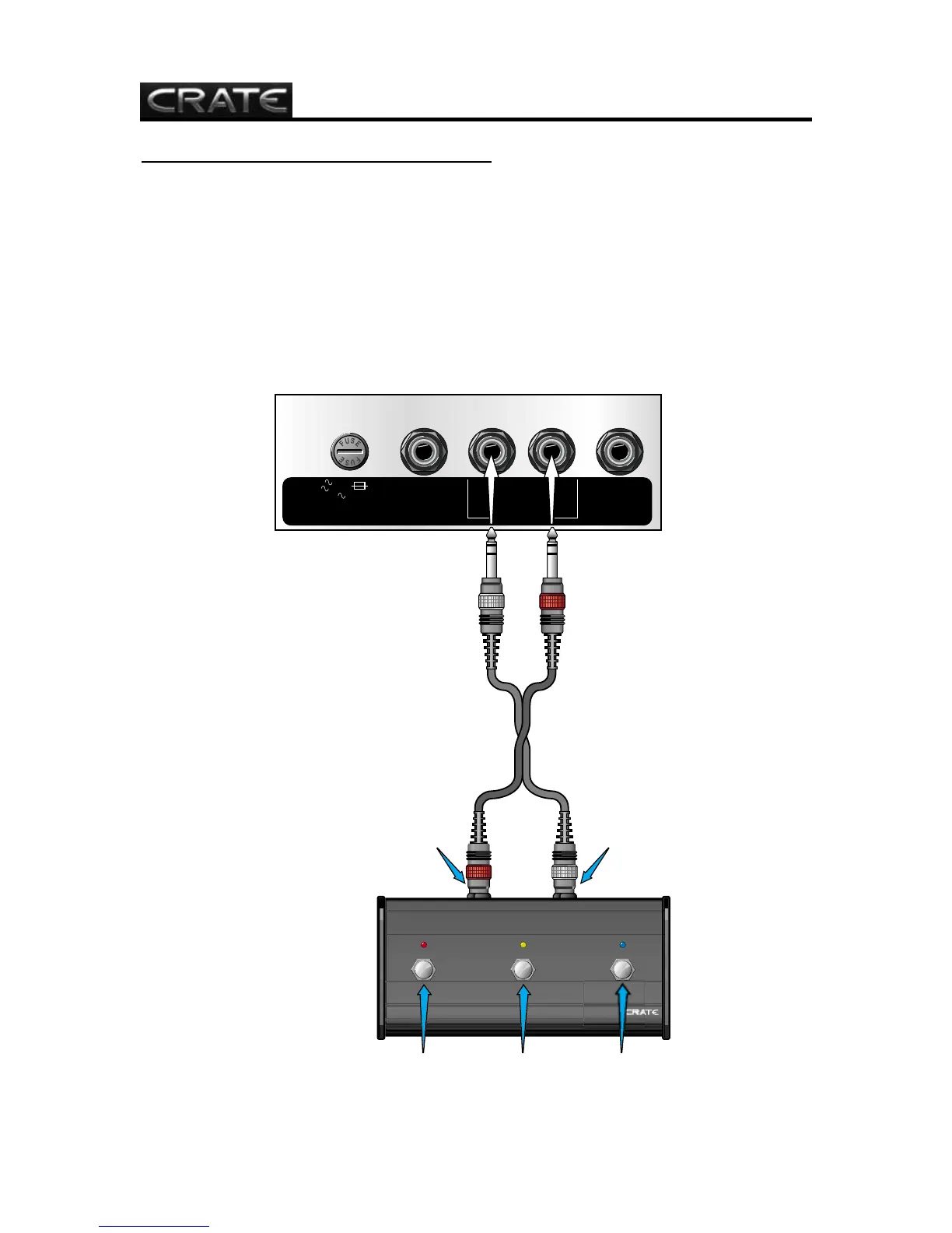 The Crate three-button footswitch supplied with the GTX65 allows access to an addi-