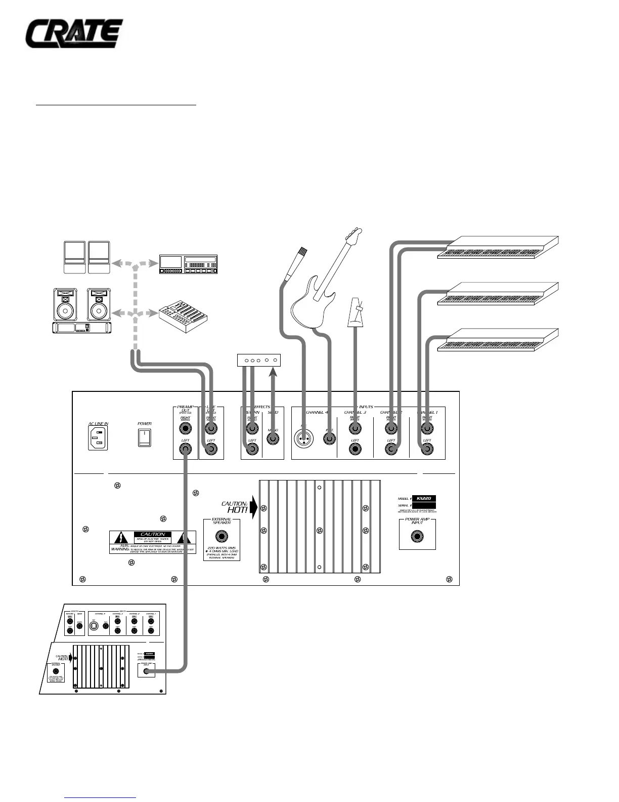 to the effects loop, although a mono device can also be used. An additional KX-220 has been connected to the left chan-
