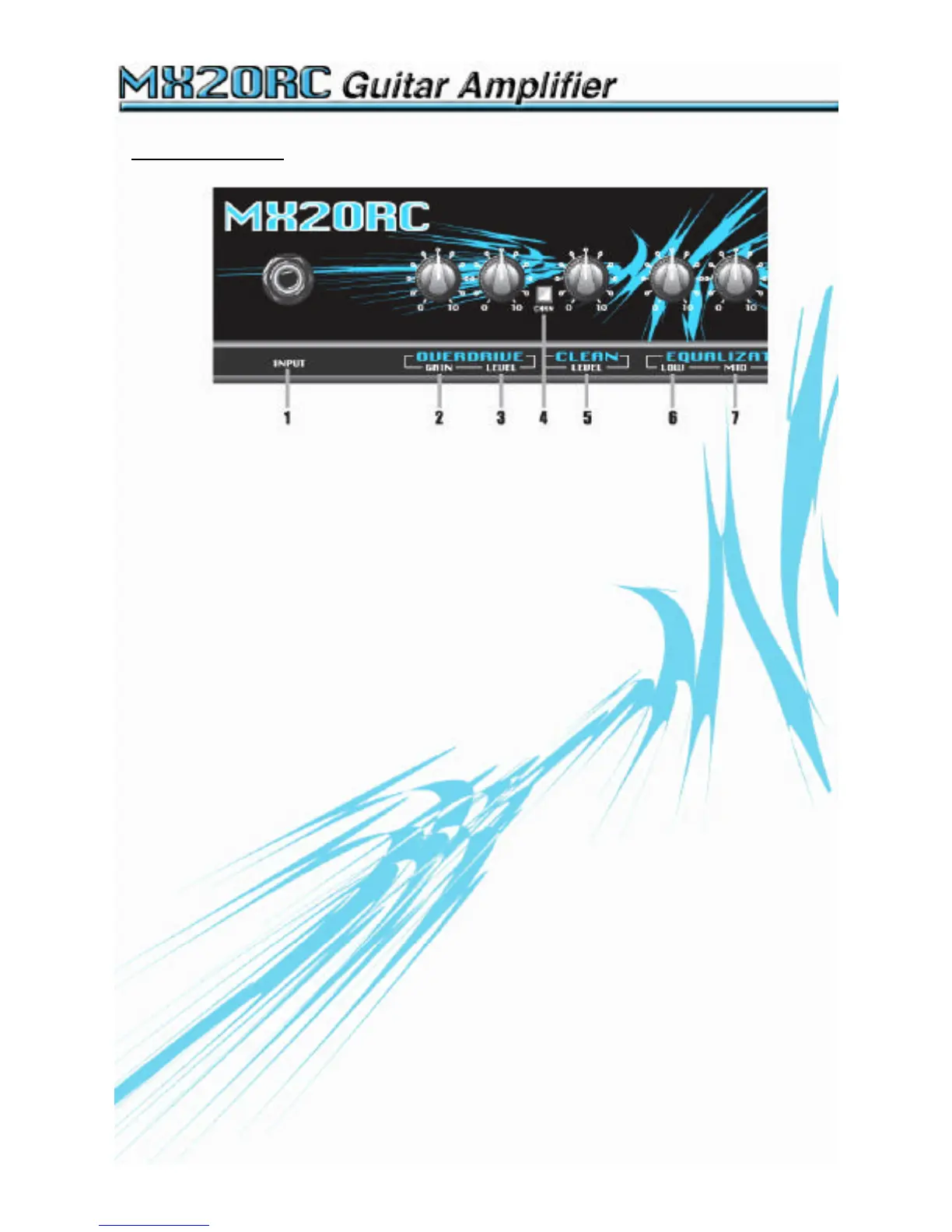 1: INPUT: Use this 1/4” jack to connect your guitar to the amplifier by means of