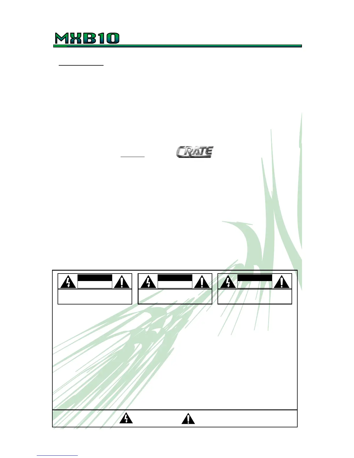 Like all Crate products, your MXB10 is designed by musicians and built using only the best components.