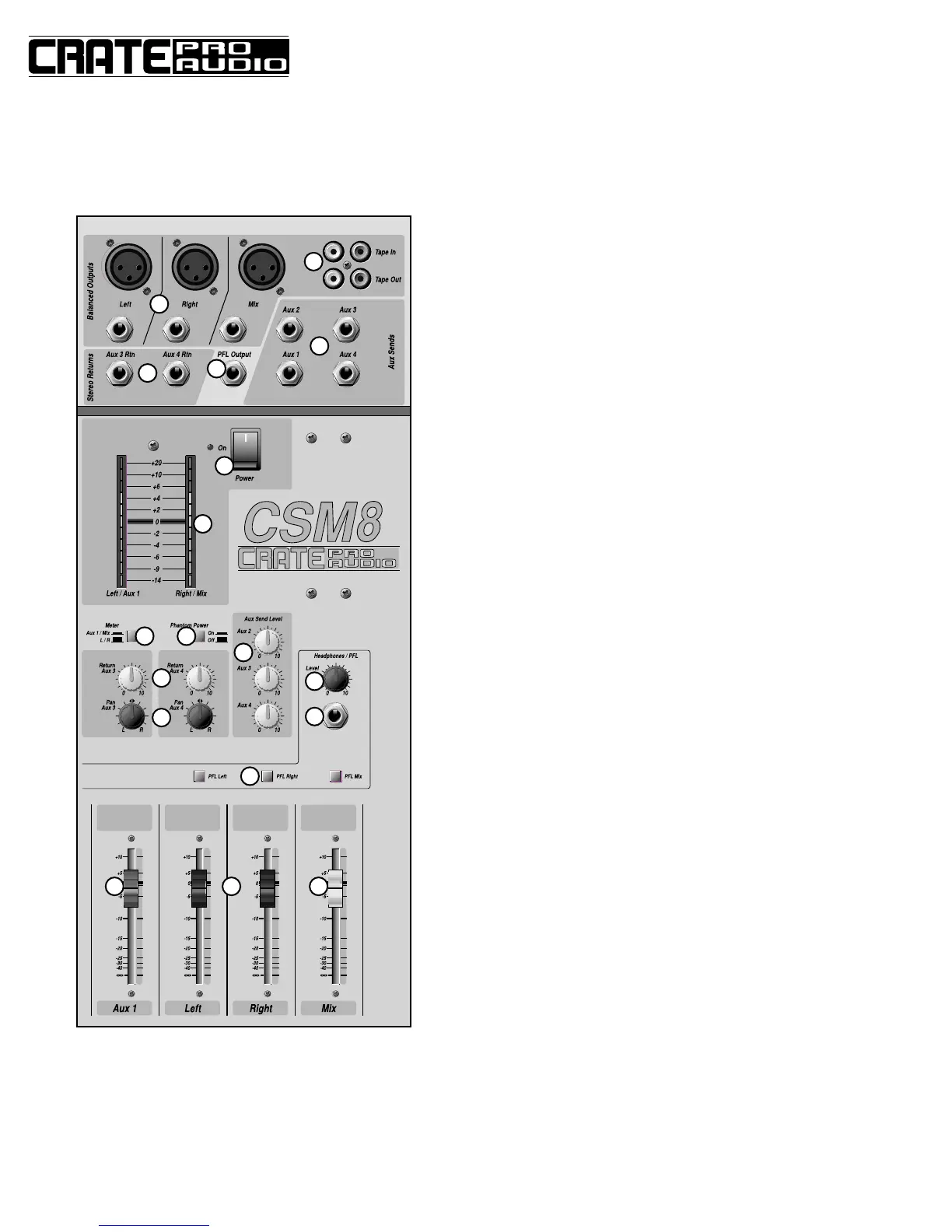 25. AUX RETURNS: Use these controls to adjust the level of the