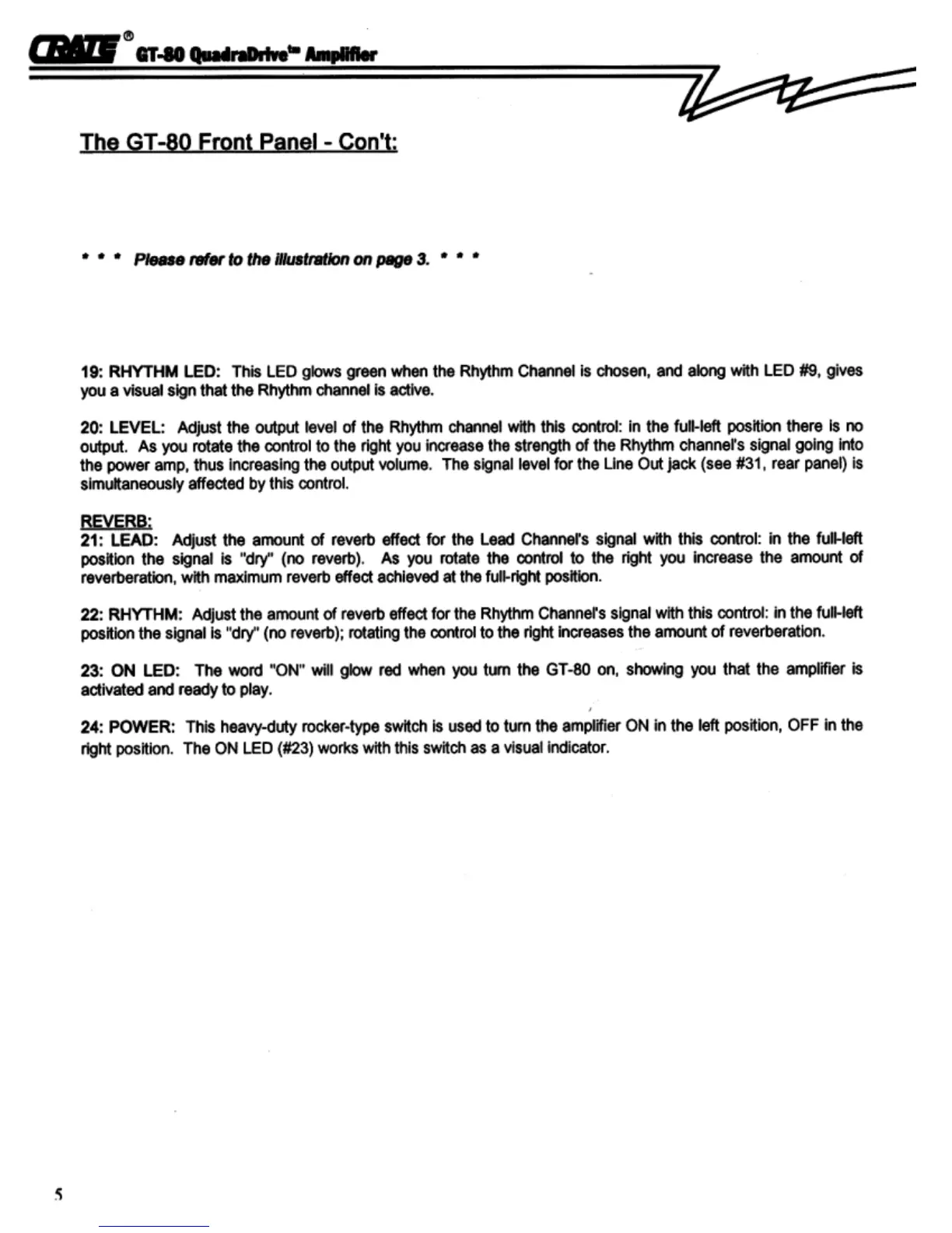 Crate QuadraDrive GT80 - Rhythm Channel Level and Reverb Controls