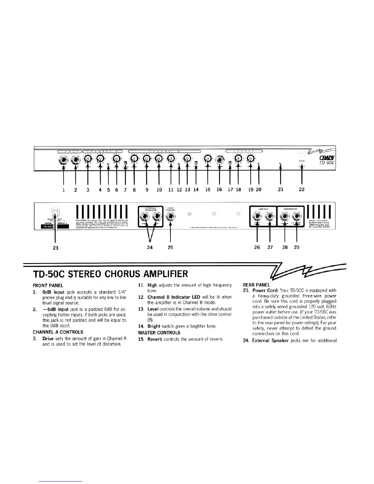 Crate TD-50C - Front Panel Overview; Input Jacks; Channel A Controls; Master Controls