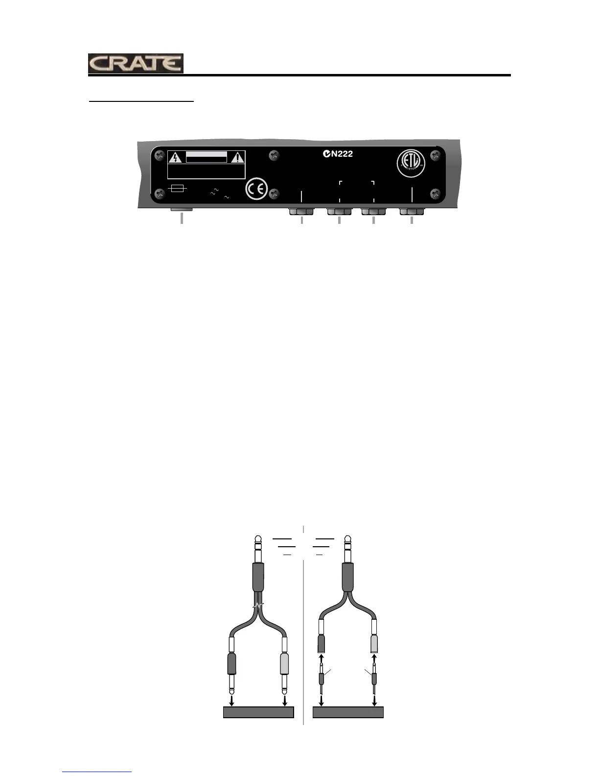 or STP203 stereo-to-mono Y-cord or an adapter such as Crate’s YPP117 and two 1/4” mono signal cables to con-