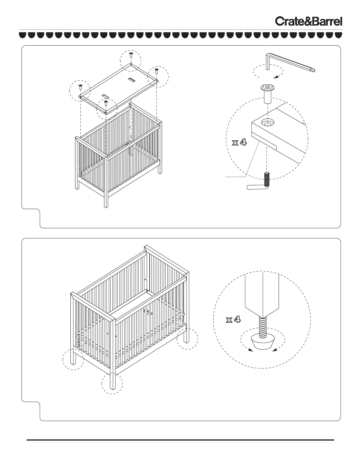 Crate&Barrel Andersen Crib - Step 3: Attach Right End Panel to Side Panels; Connect Right End Panel to Side Panels; Secure Side Panel Connections