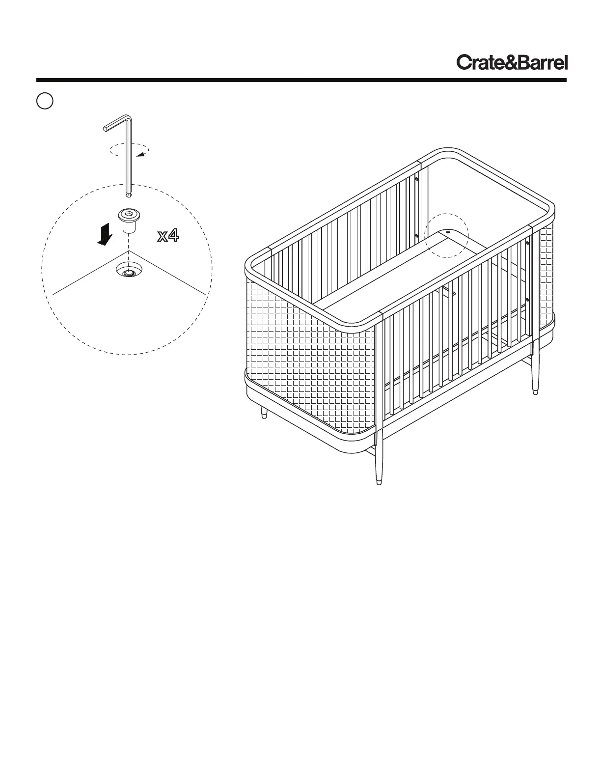 With the assistance of another adult, fit mattress panel onto corresponding support pins of crib assembly. From the