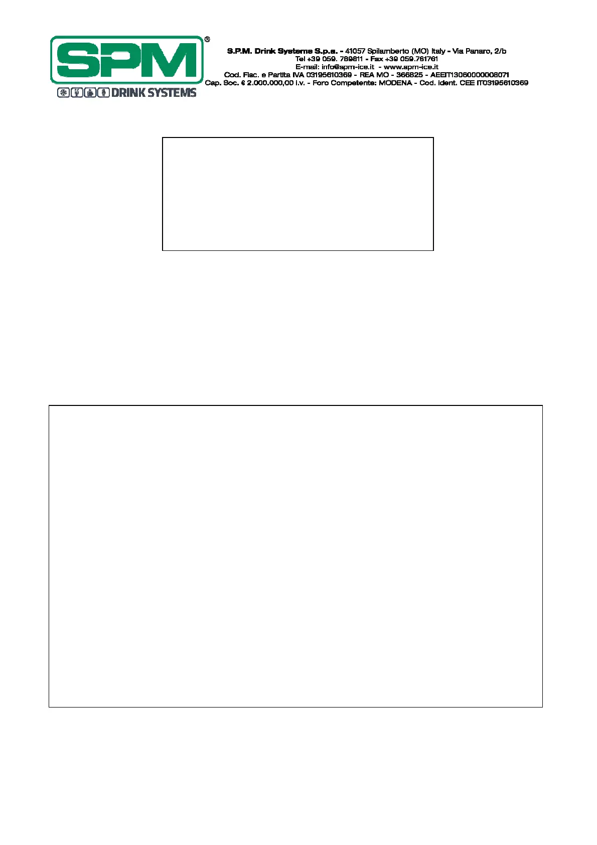Tutti i diritti di riproduzione del presente manuale sono riservati alla SPM DRINK SYSTEMS, la riproduzione anche