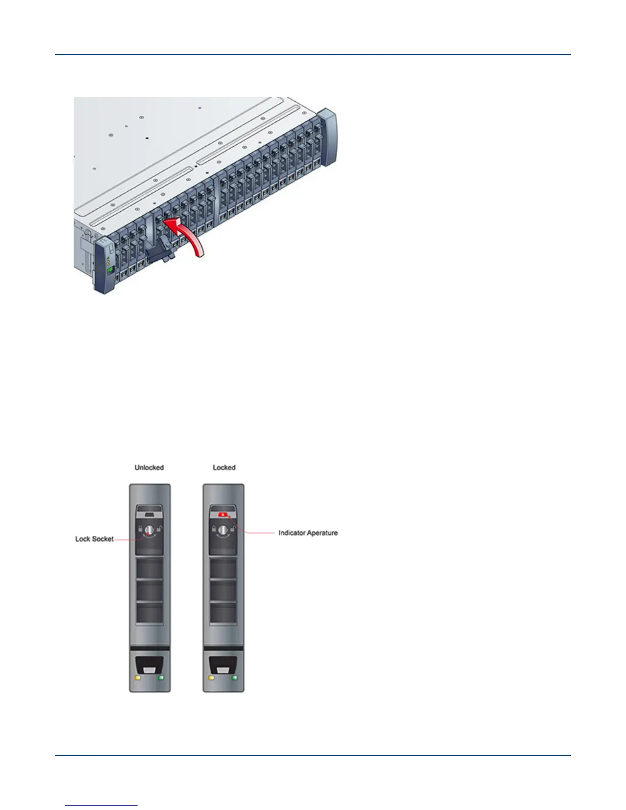7. Engage the drive carrier locks, using a T10 Torx screwdriver, and rotating clockwise until the red indicator