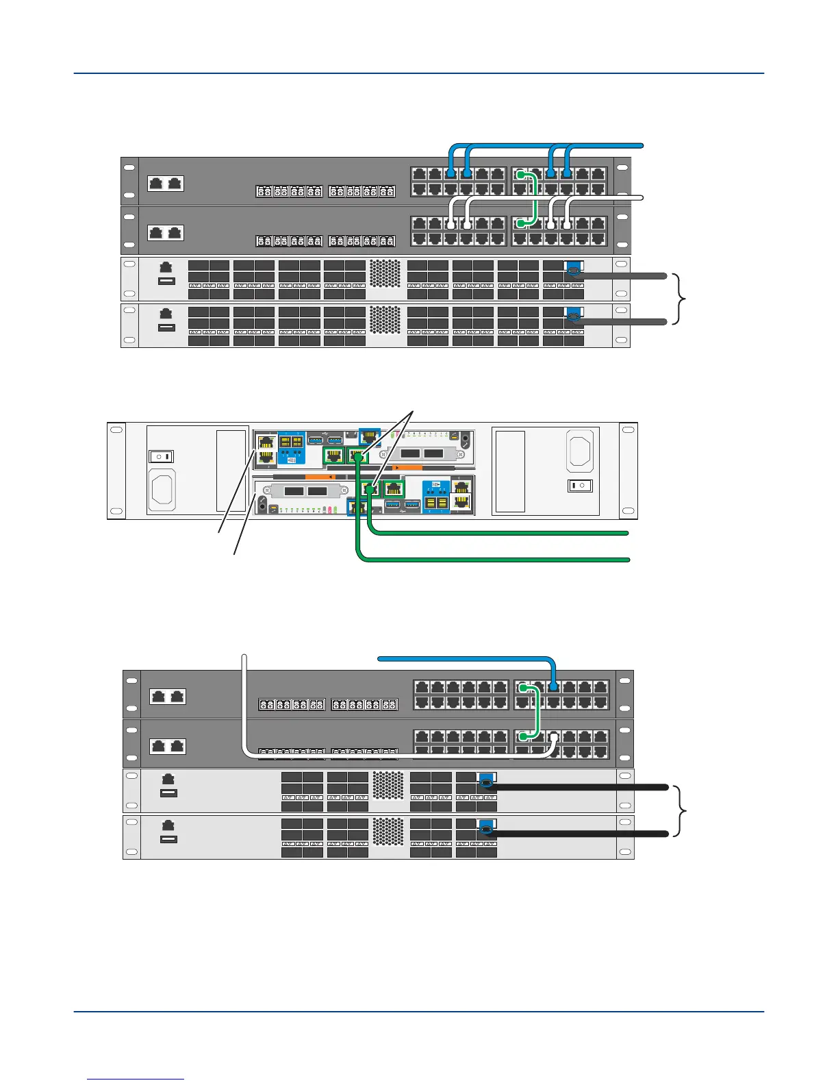 1. In the base rack and each storage rack, connect an Omni-Path fabric data cable to the lower Omni-Path