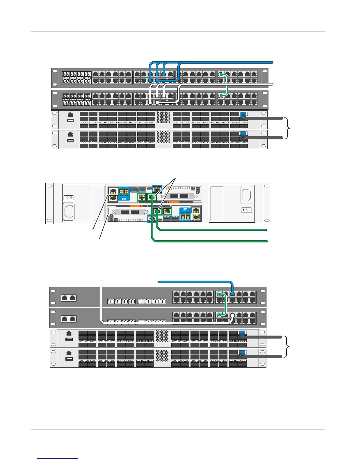 1. In the base rack and each storage rack, connect an Omni-Path fabric data cable to the lower Omni-Path