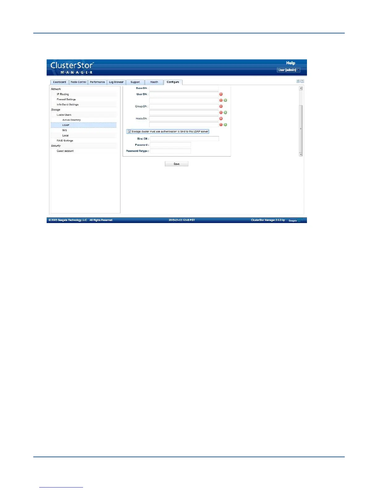 a. Check the Storage cluster must use authentication to bind to this LDAP server box.