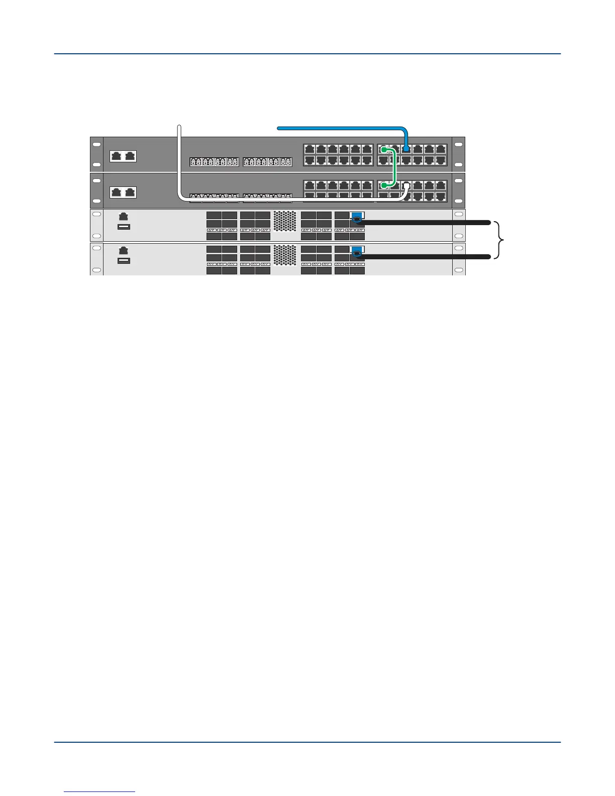 3. In each storage rack of a multi-rack system, connect a Cat 5/6 Ethernet cable to the lower Ethernet switch