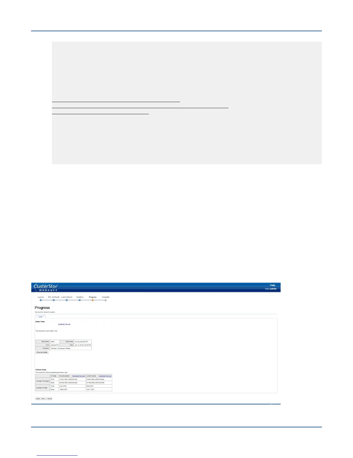 Lustre validation tests are complete and the results display on the Review Progress screen. If the tests do not run,