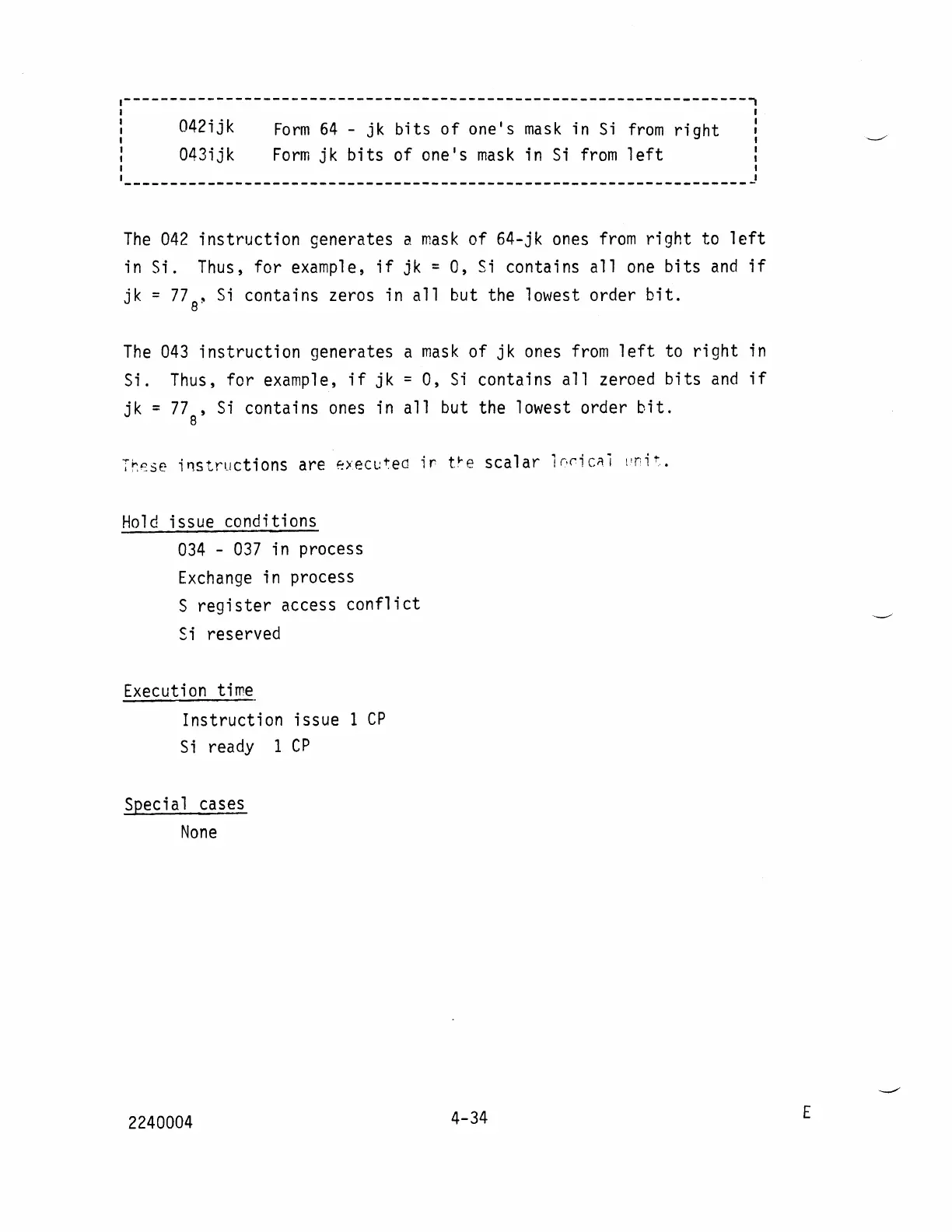 Cray CRAY-1 - 042 Ijk Form 64 - Jk Bits of Ones Mask in si from Right 043 Ijk Form Jk Bits of Ones Mask in si from Left
