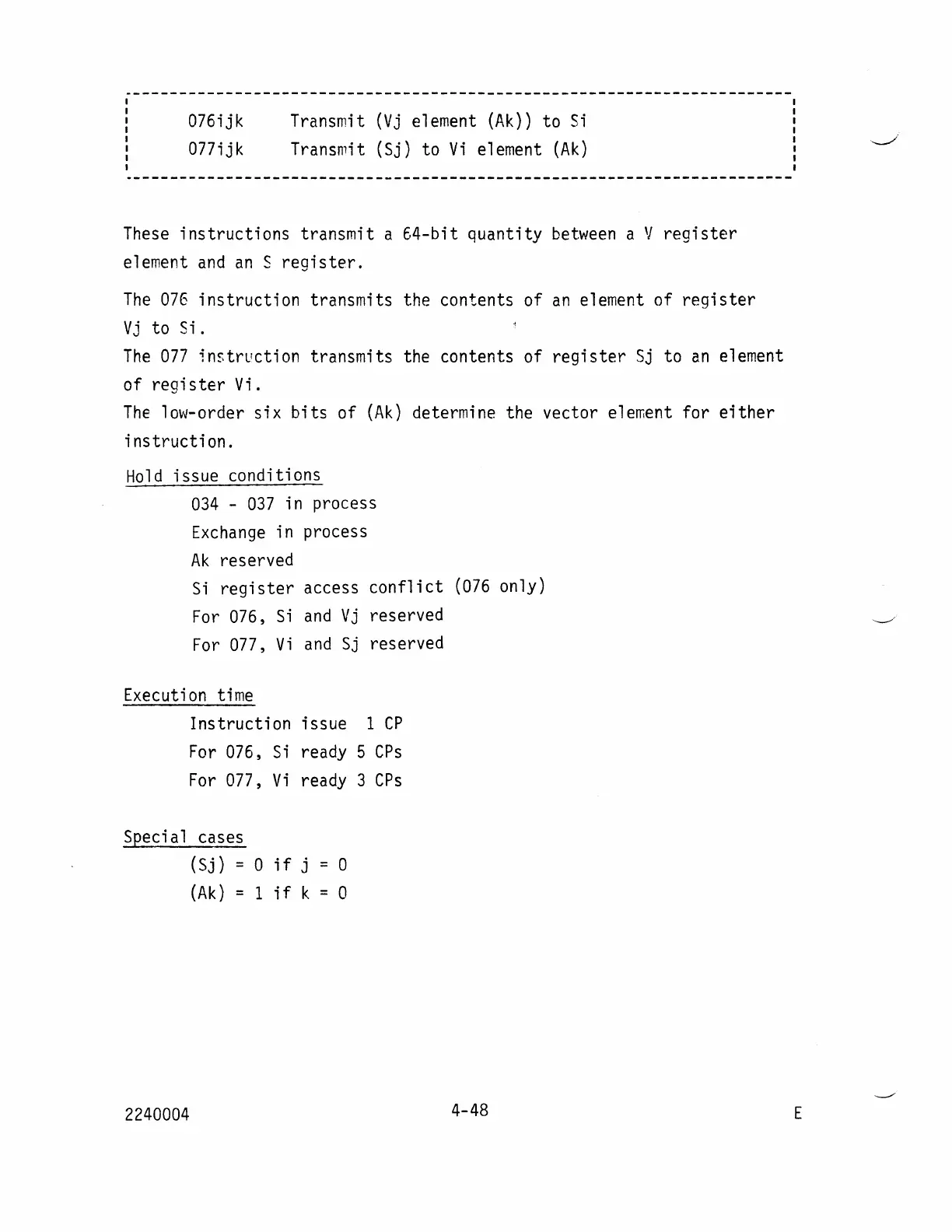 Cray CRAY-1 - 076 Ijk Transmit (Vj Element (Ak)) to si; 077 I J K Transmit (Sj) to VI Element (Ak)