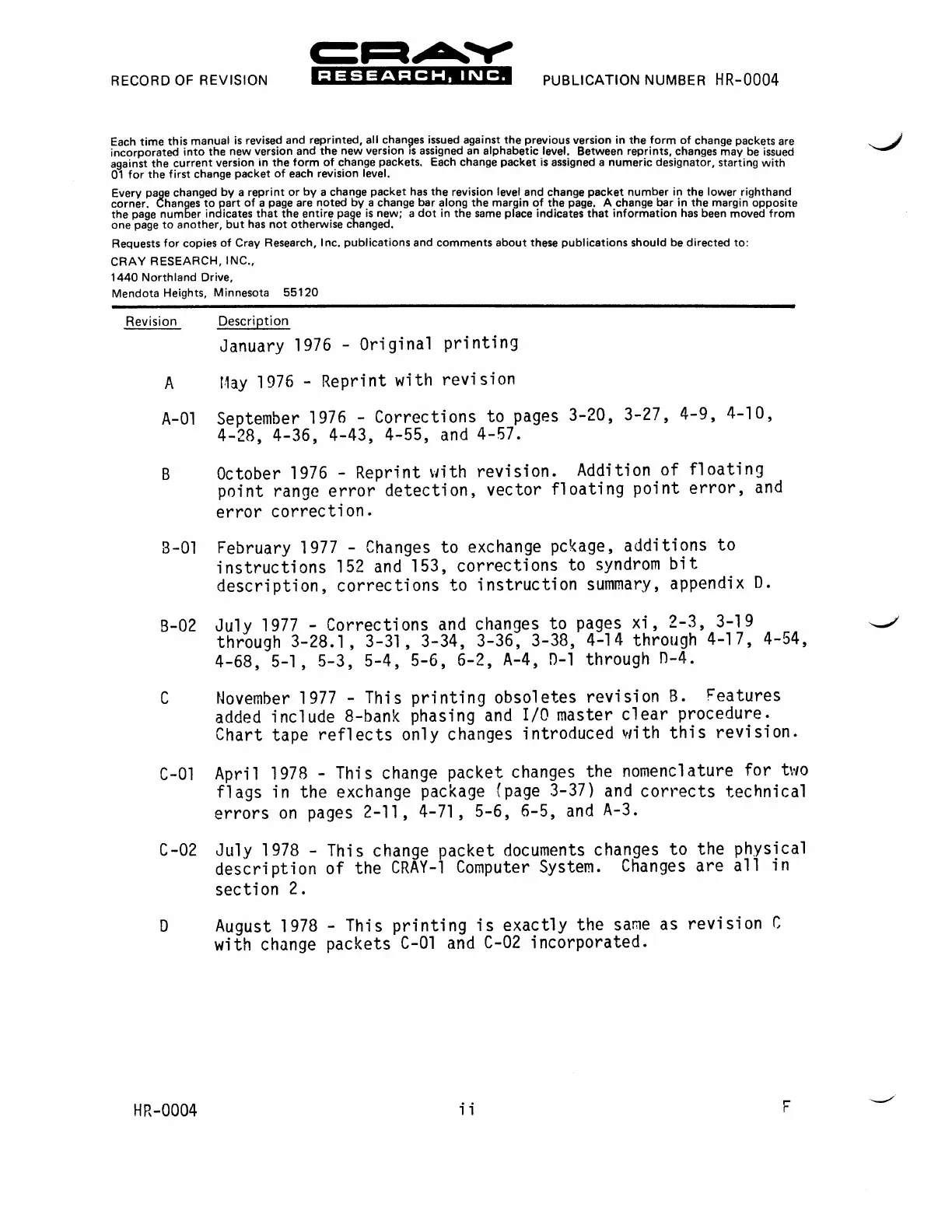 assigned an alphabetic level. Between reprints, changes