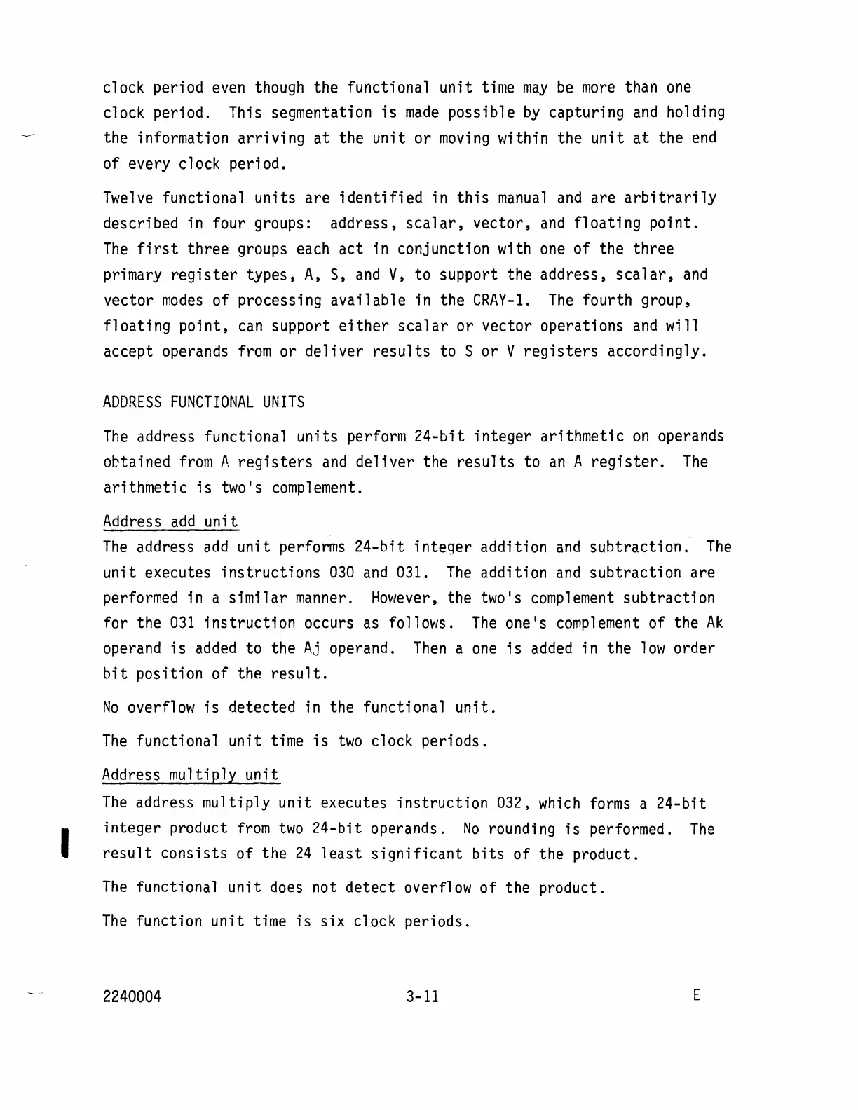 address functional units perform 24-bit integer arithmetic