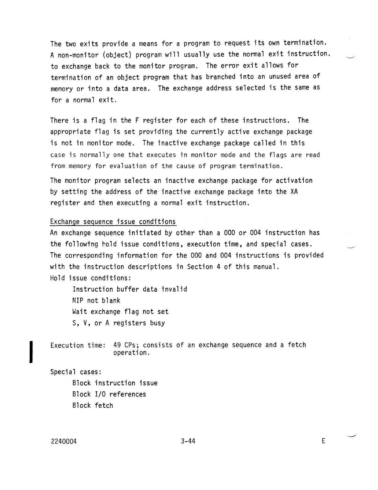the followtng hold issue conditions, execution time,