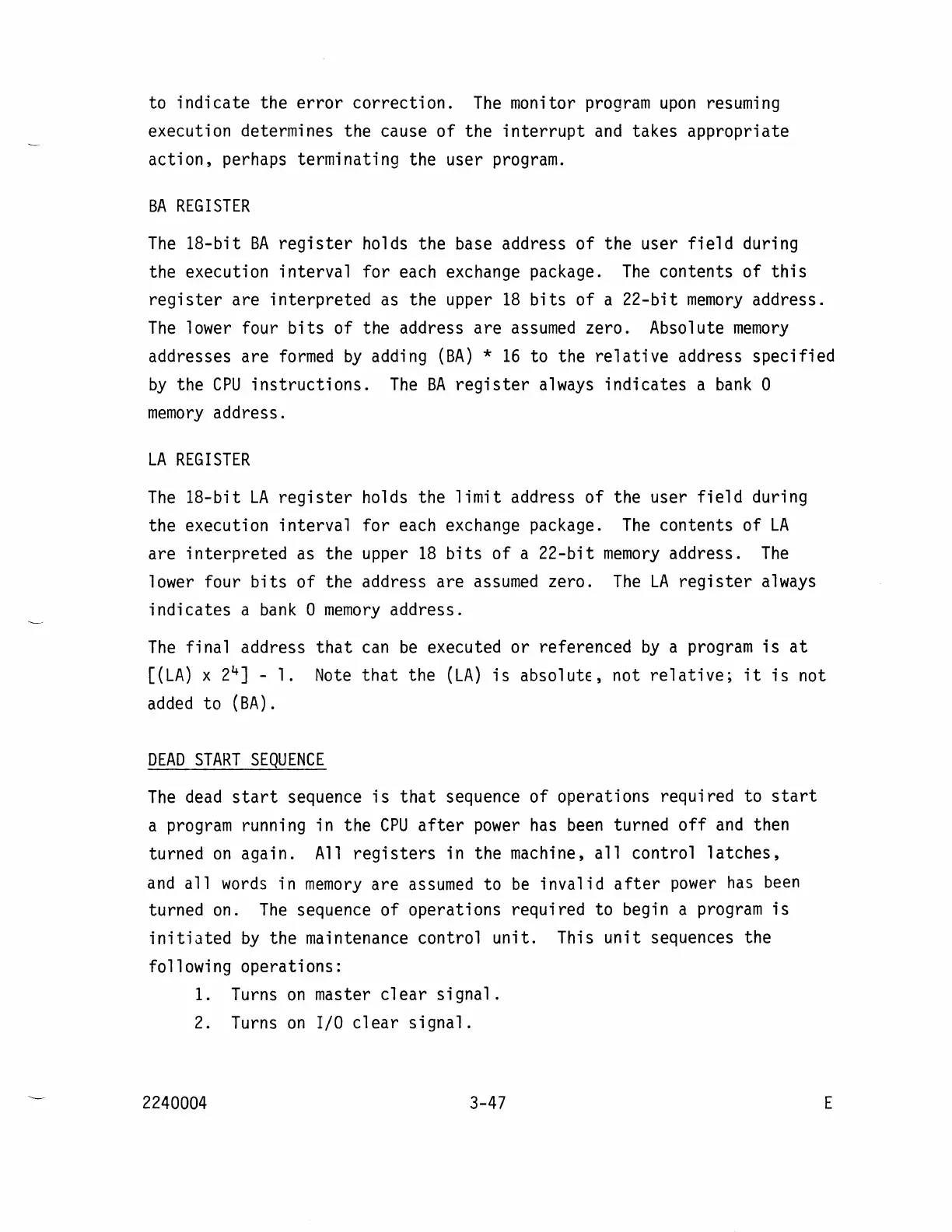 Cray CRAY-1 - Ba Register; La Register; Dead Start Sequence