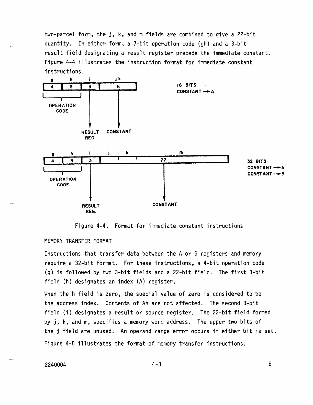 Cray CRAY-1 - Memory Transfer Format; Format for Immediate Constant Instructions