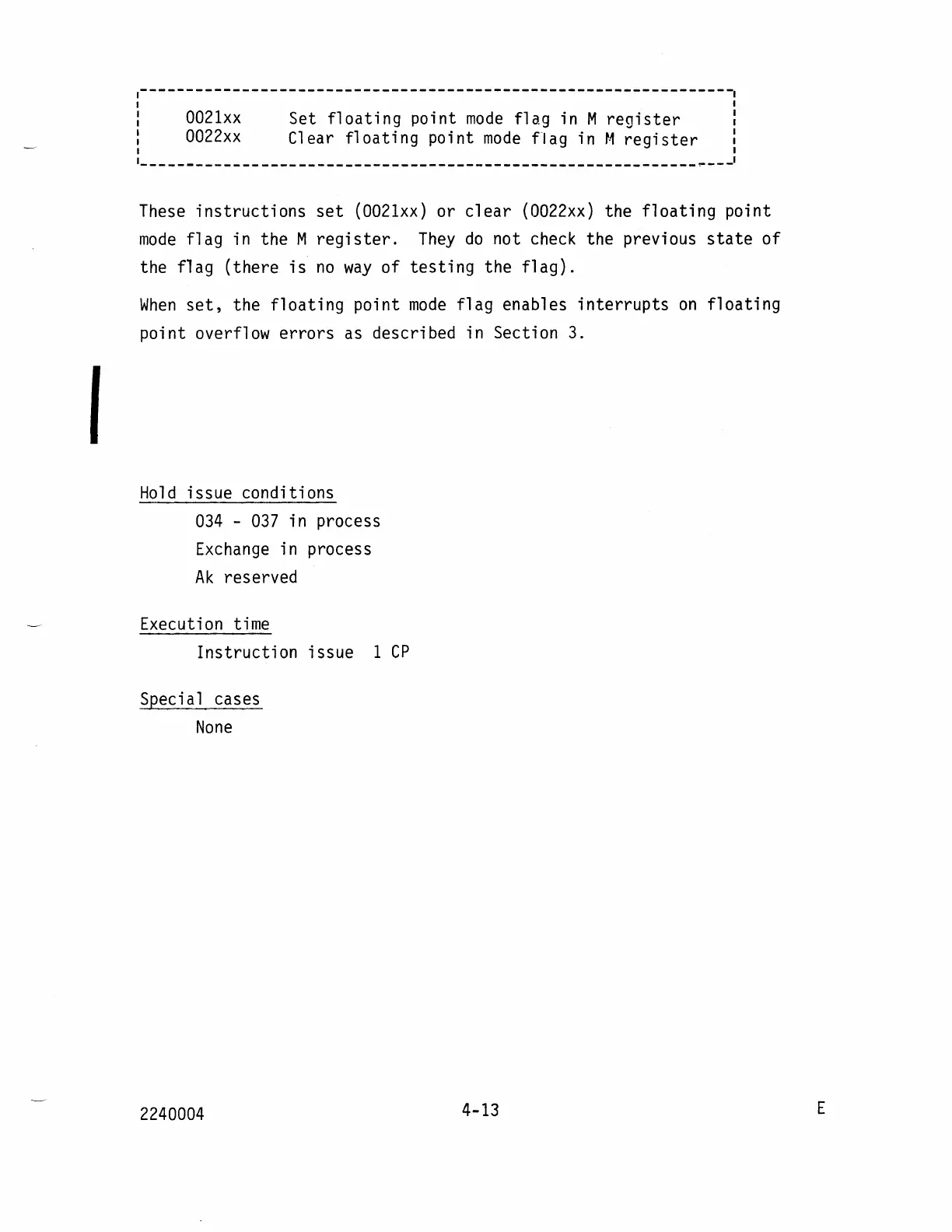 Cray CRAY-1 - 0021 Xx Set Floating Point Mode Flag in M Register; 0022 Xx Clear Floating Point Mode Flag in M Register