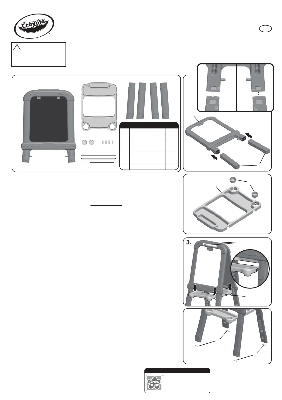 • Der Zusammenbau ist von Erwachsenen vorzunehmen. Keine Werkzeuge erforderlich.