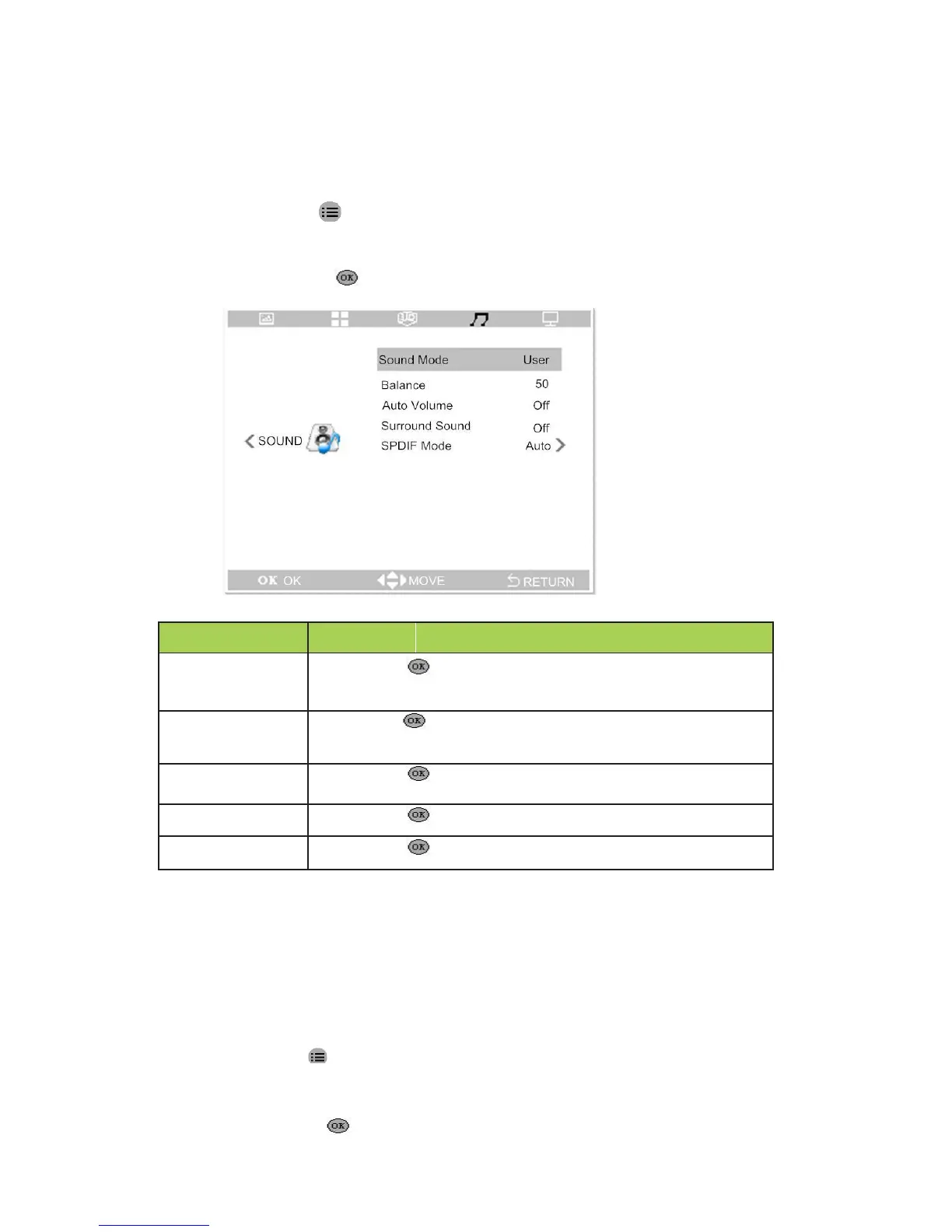 To access the sound setting menu and adjust the settings, perform the following steps:
