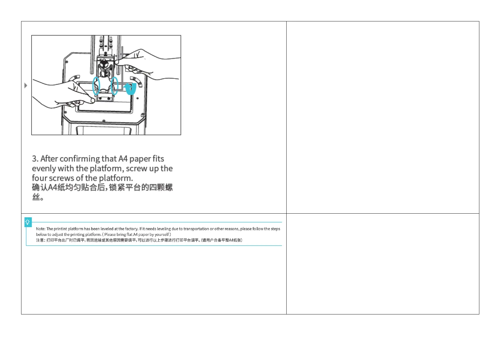 follow the steps below to adjust the printing platform. (Please