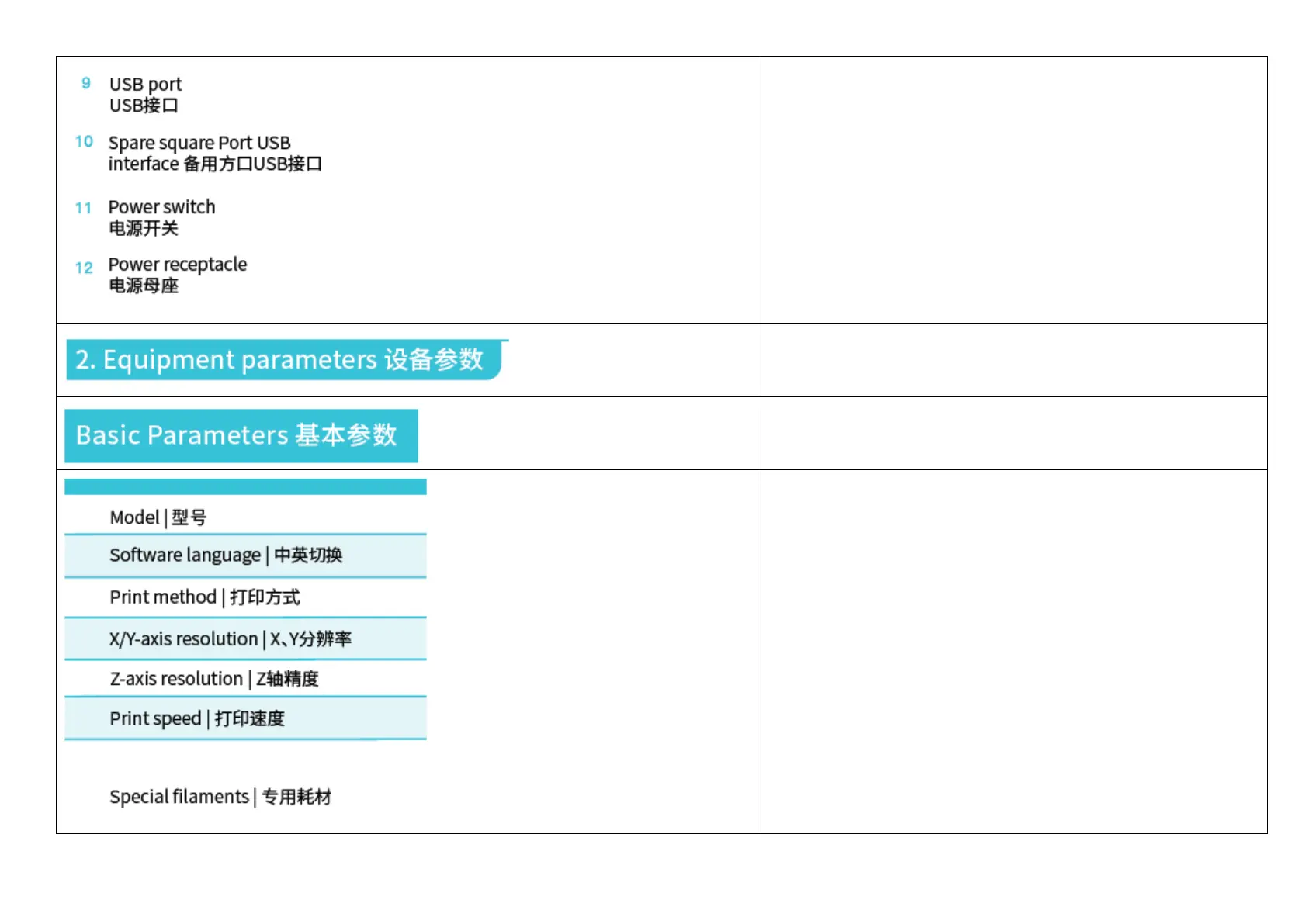 10. Spare square Port USB interface 备用方口USB接口