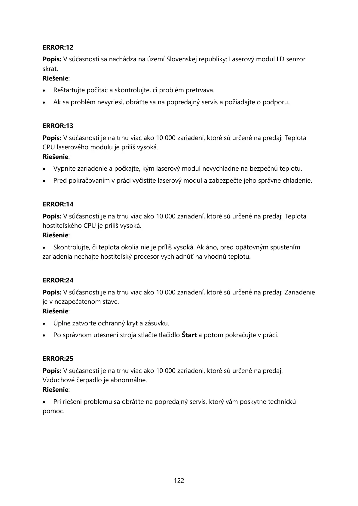 • Pri riešení problému sa obráťte na popredajný servis, ktorý vám poskytne technickú