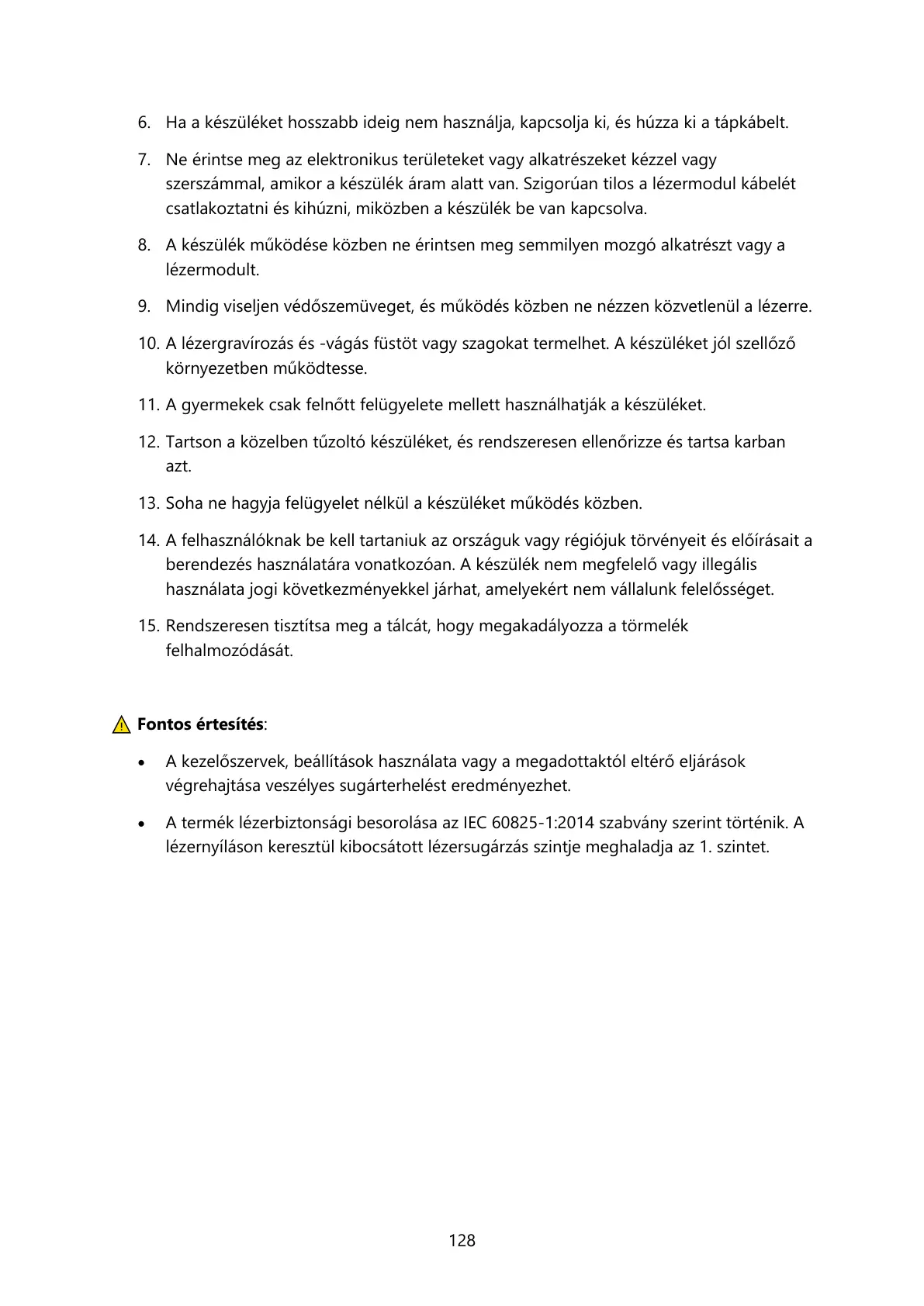 • A termék lézerbiztonsági besorolása az IEC 60825-1:2014 szabvány szerint történik. A