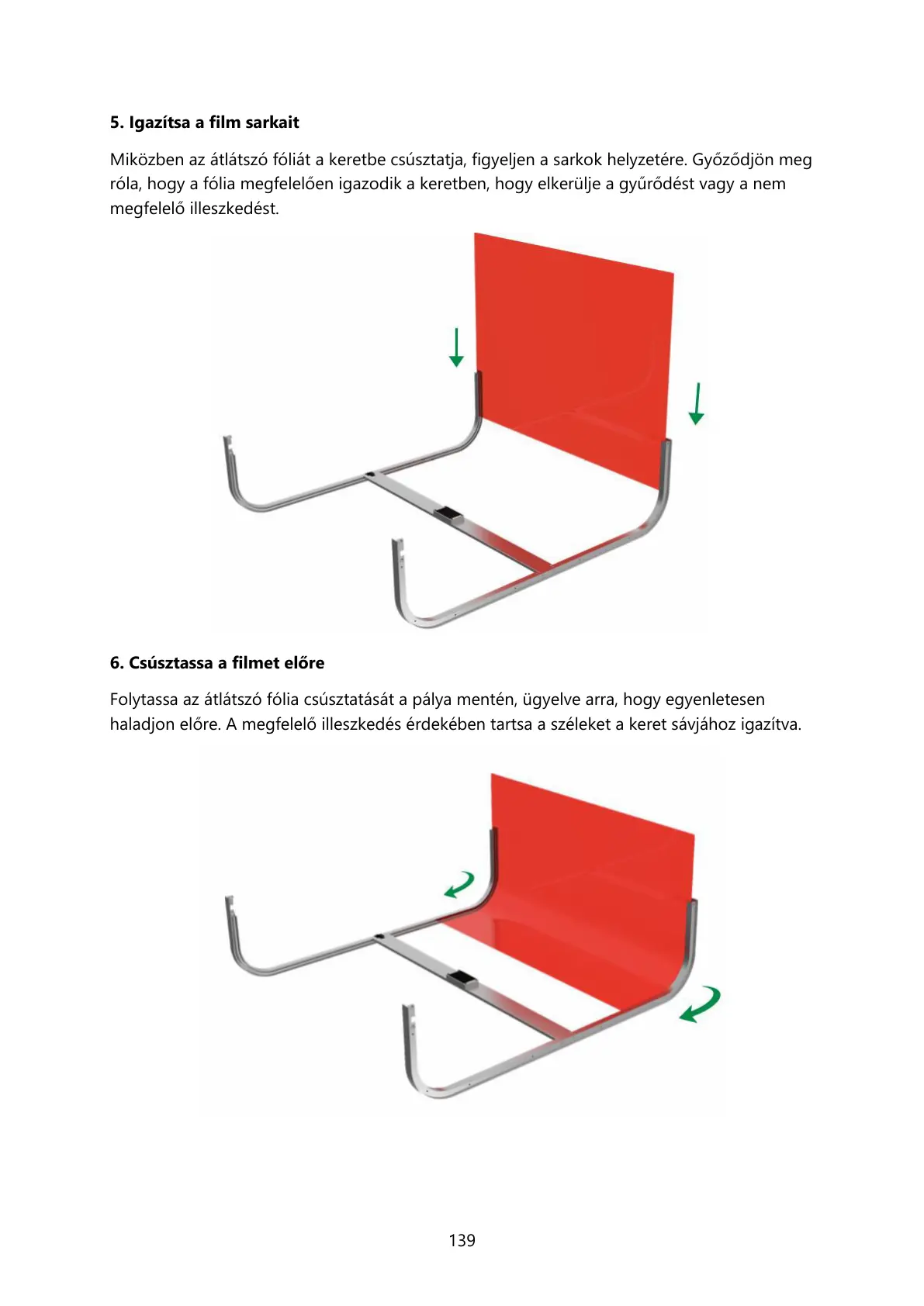 róla, hogy a fólia megfelelően igazodik a keretben, hogy elkerülje a gyűrődést vagy a nem