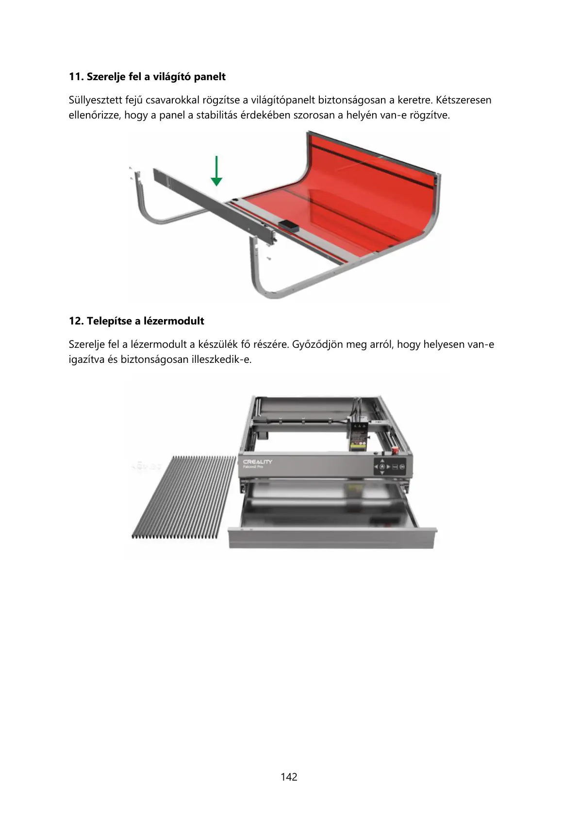 11. Szerelje fel a világító panelt