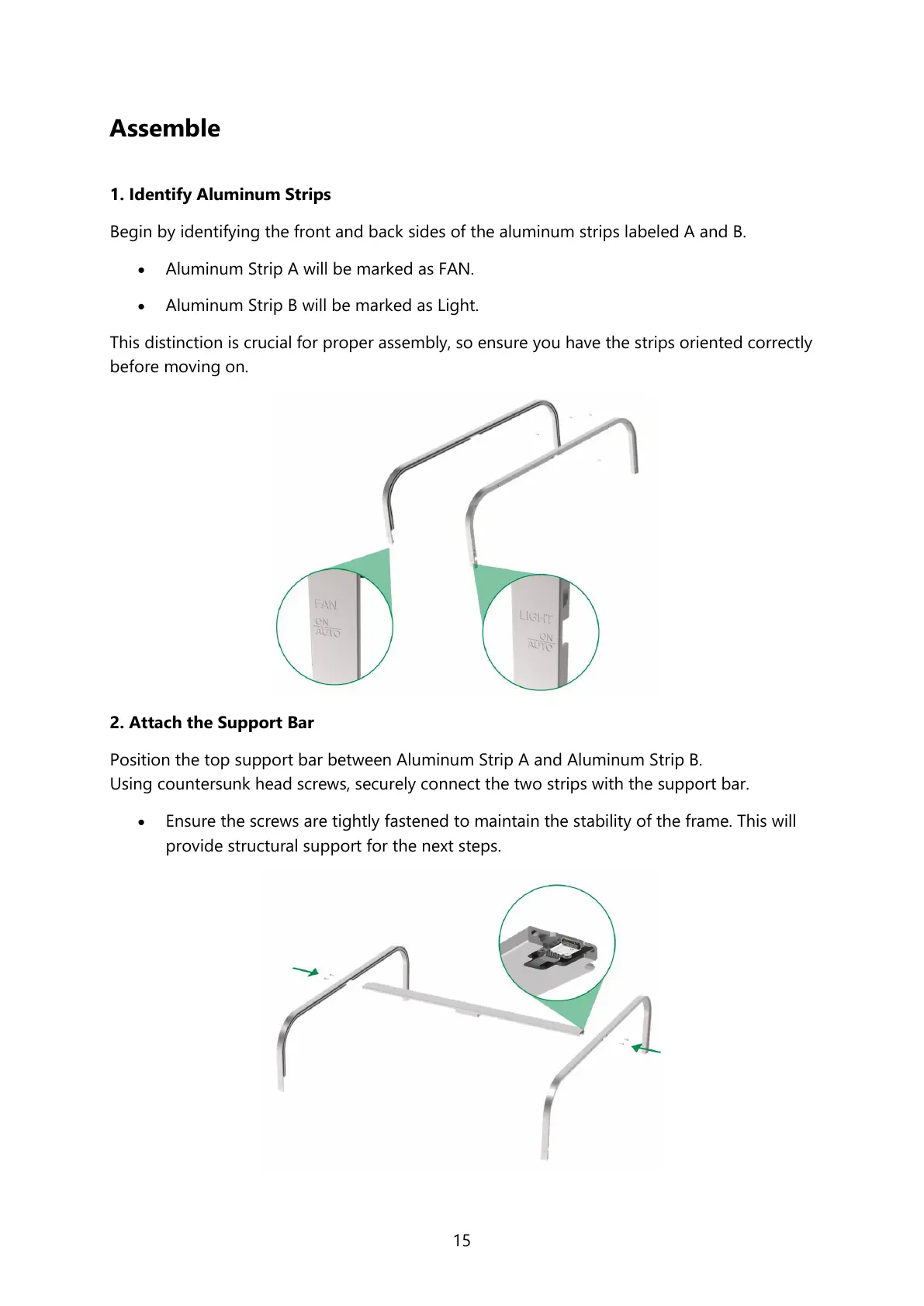 Position the top support bar between Aluminum Strip A and Aluminum Strip B.