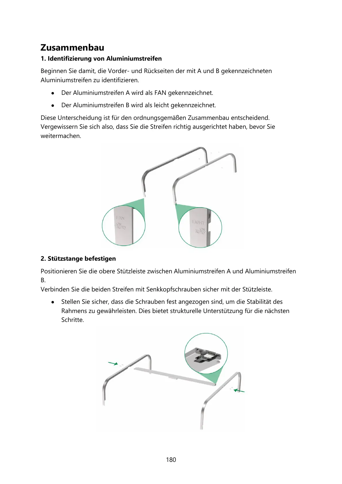 Positionieren Sie die obere Stützleiste zwischen Aluminiumstreifen A und Aluminiumstreifen