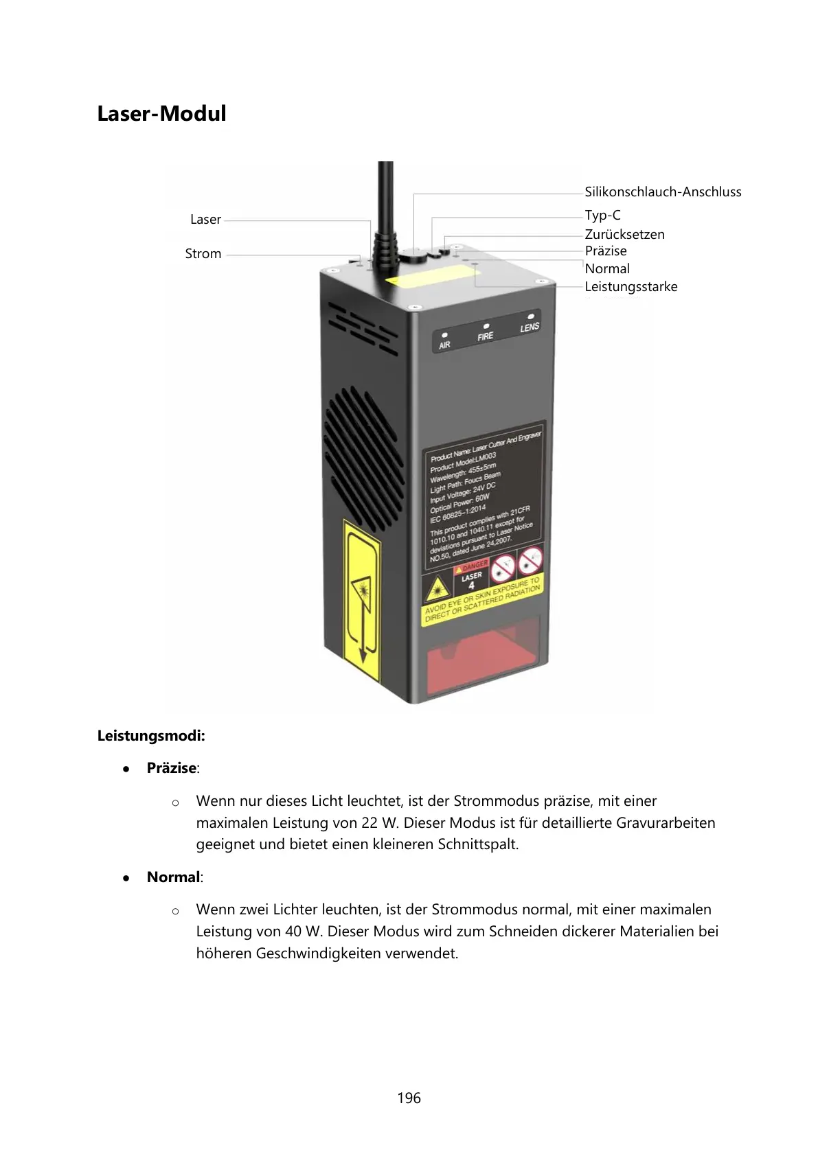 maximalen Leistung von 22 W. Dieser Modus ist für detaillierte Gravurarbeiten