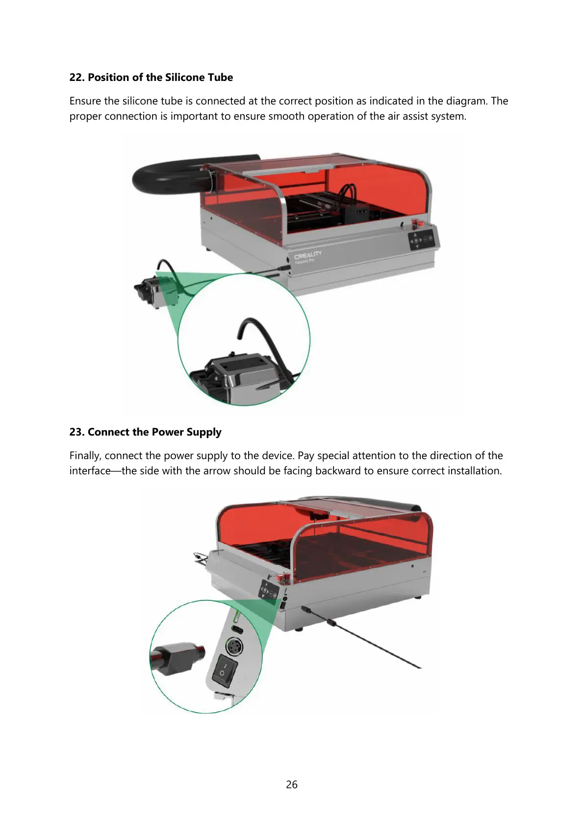 Ensure the silicone tube is connected at the correct position as indicated in the diagram. The