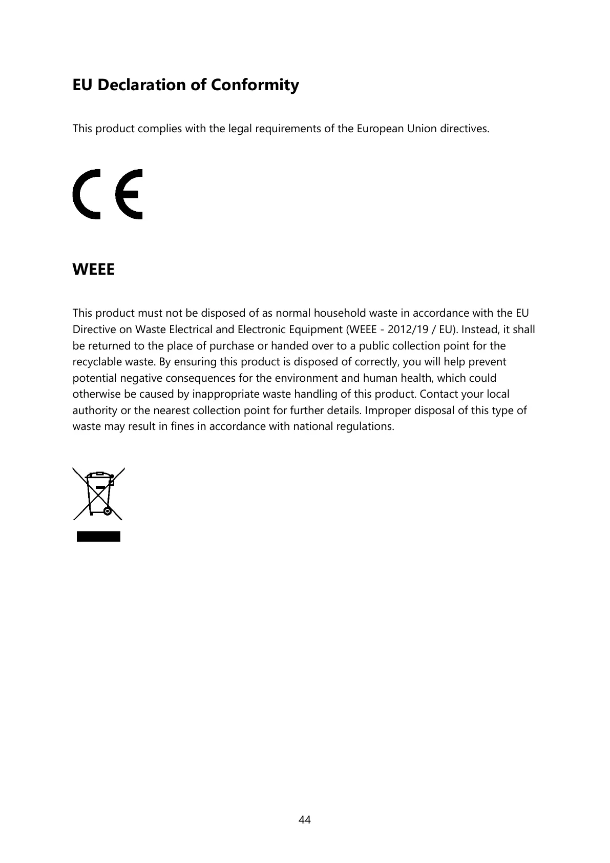 Directive on Waste Electrical and Electronic Equipment (WEEE - 2012/19 / EU). Instead, it shall
