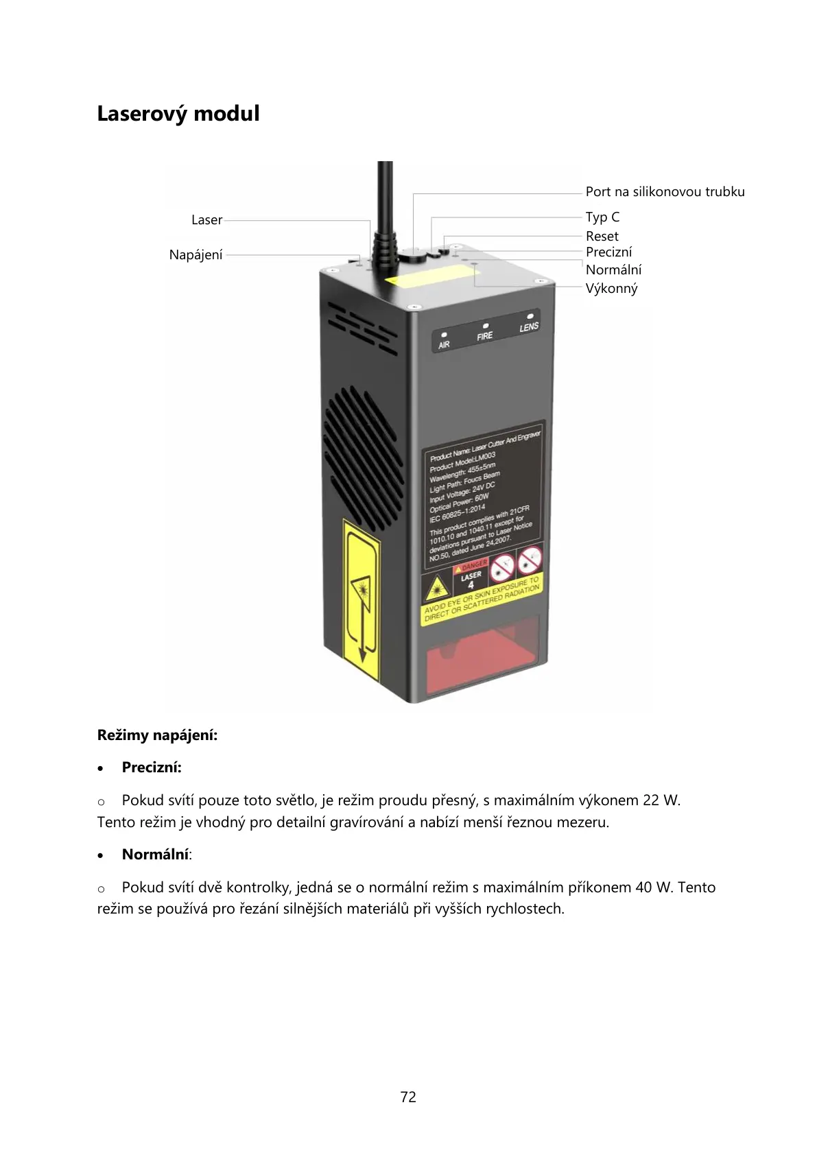 Tento režim je vhodný pro detailní gravírování a nabízí menší řeznou mezeru.
