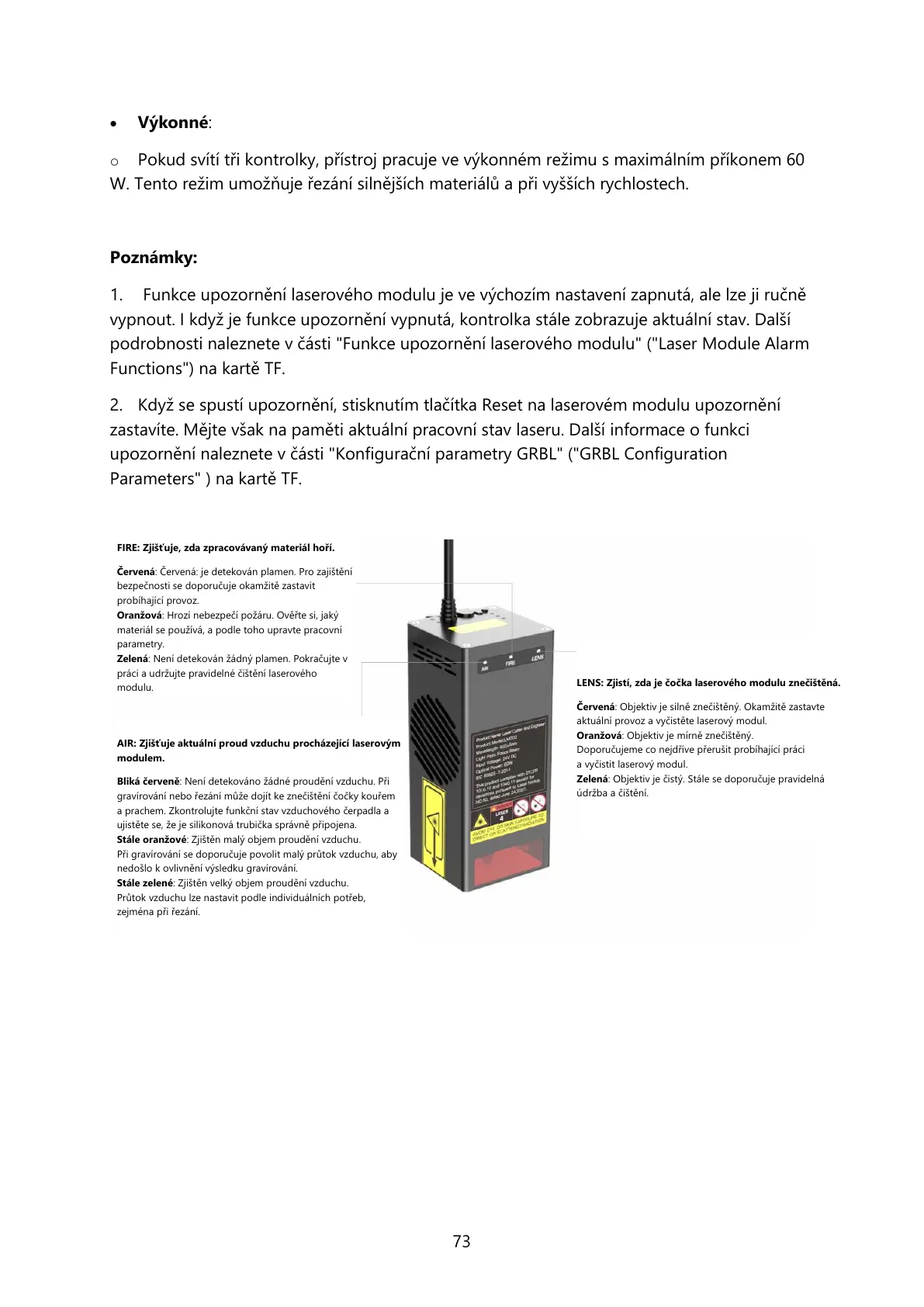 podrobnosti naleznete v části "Funkce upozornění laserového modulu" ("Laser Module Alarm